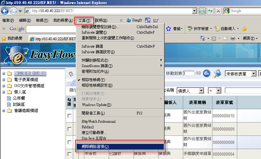重要:EasyFlow首次使用需知 --> IE瀏覽器詳細設定值