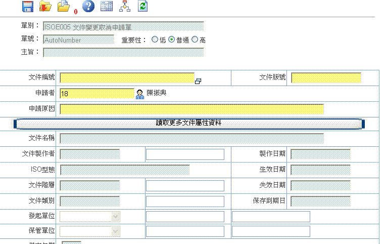 當您欲取消一份ISO文件變更申請單時,填寫本表單,經審核單位審核後,就可以取消變更此文件了。