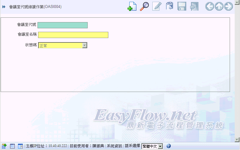 首 頁 --> OAS辦公室自動化 --> OAS表單異動資料維護作業 --> 會議室代號維護作業