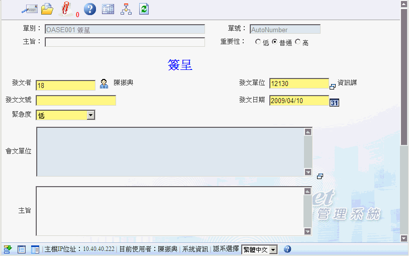 首 頁 --> OAS 電子表單清單 --> 簽呈