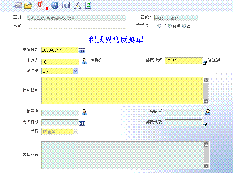 首 頁 --> OAS 電子表單清單 --> 程式異常反應單