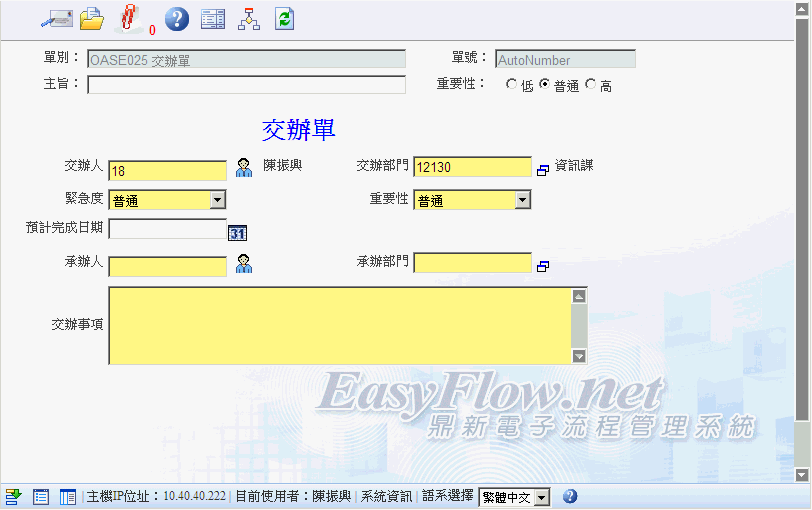 • 提供一個公司內部部門之間彼此的交辦事項,可透過此系統做追?控管。